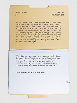 As you wander down these endless stairs, the young child begins talking about the Library itself. How it has helped raise them, name them, and led them to writing the letters. The story is curious, and the Librarian, following behind you, has said nothing, but her distaste of this tale is palatable. Each comment seems to make the gold in the bricks glimmer, as though they are powered through the words of stories themselves. Eventually, Hawthorne admits that they have no idea what the Library is actually for- and to this, the Librarian interrupts.